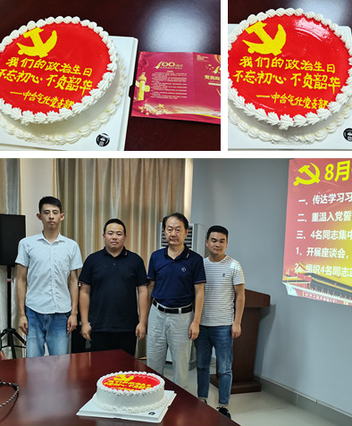為慶祝中國共產黨成立100周年,落實黨史學習教育活動安排,進一步增強黨員身份意識、責任意識、宗旨意識,激發支部向心力凝聚力戰斗力,引導全體黨員“不忘初心 牢記使命”8月2日下午中科合肥煤氣化技術有限公司黨支部,組織全體黨員、入黨積極分子和部分職工代表為4名不同黨齡7-8月份入黨黨員過“政治生日”。支部精心準備了“政治生日賀卡”發至過“政治生日”的黨員手中,將入黨誓詞和支部對黨員的衷心祝福、殷切希望都印制在這張生日賀卡上。